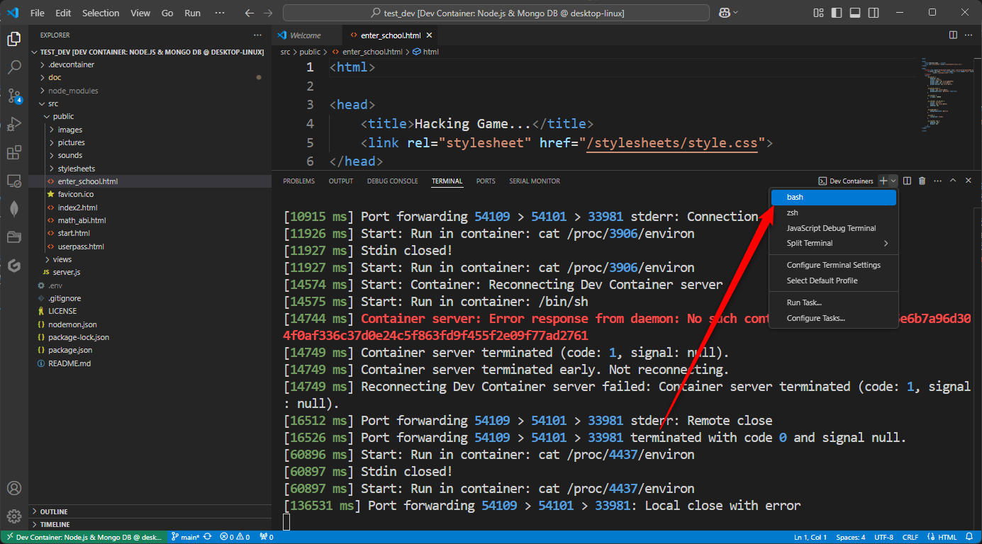add howto clone and start the devcontainer and how to start express inside.